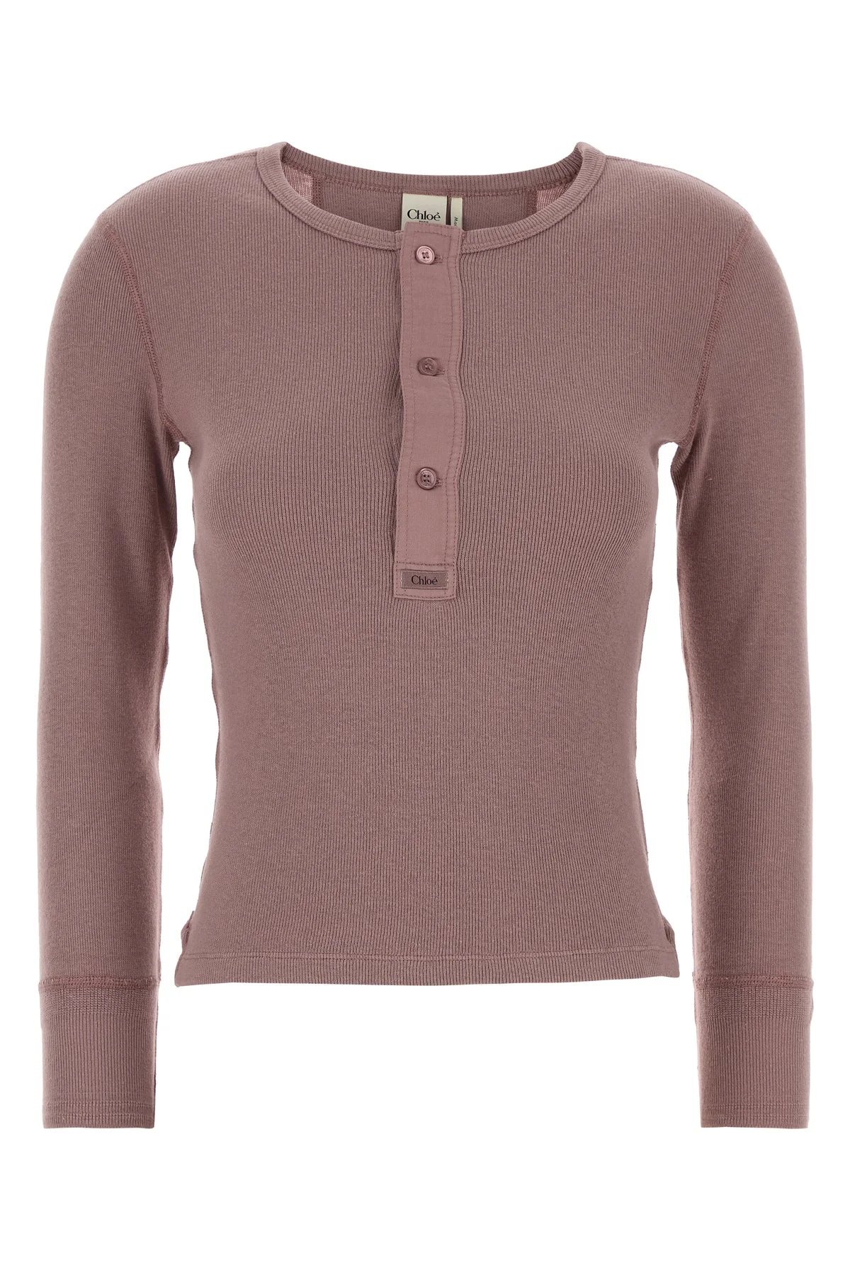 Long-sleeves t-shirt realized in pure cotton characterized by tonal embroidered logo at the back enriched by logoed label at the front. - Round neckline - Partial buttons closure - Lateral slits on the hemline DETAILS Antiqued pink cotton t-shirt Exterior: 100% Cotton Made in portugal Sample size: XS