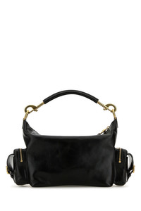 Handbag realized in polished-finish slightly pebble calf leather. - Detachable tonal leather round handle - Adjustable detachable tonal leather shoulder strap - Zip closure - A flap pocket at the front and two zip pockets on the sides - Lined interior with a patch pocket DETAILS Black leather Camera Bag handbag Exterior: 100% Calf Lining: 54% Cotton 46% Linen Finishing: Golden metal Made in italy Width: 34 cm Height: 16,5 cm Depth: 15 cm Handle height: 24 cm Min shoulder strap length: 50 cm Max shoulder strap length: 60 cm