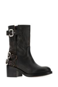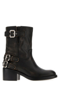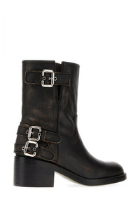 Boots realized in vintage effect pebble calf leather enriched by adjustable straps on the side. - Round toe - Printed logo on the inside DETAILS Black leather Dakota boots Exterior: 100% Calf Interior: 100% Leather Sole: Rubber Made in italy Heel height: 6 cm