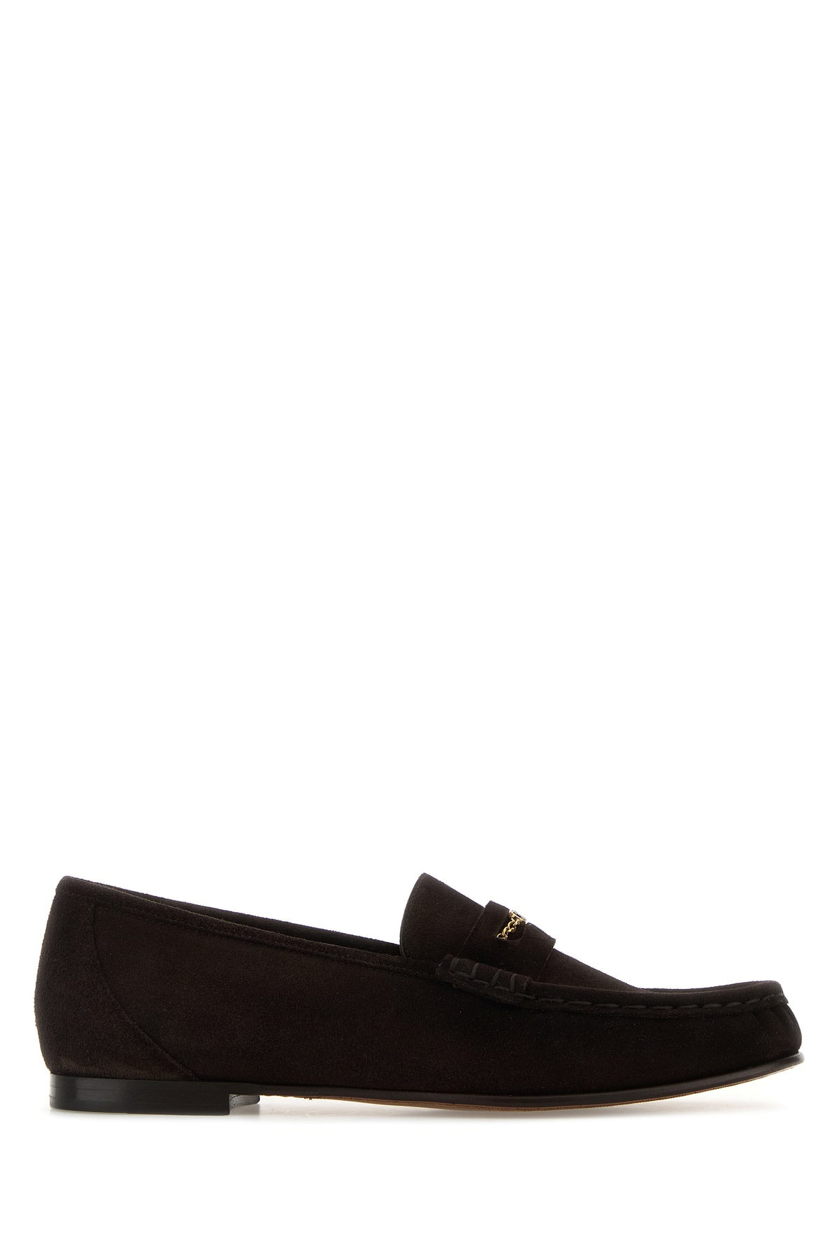 Loafers realized in calf suede enriched by metal lettering logo on the vamp. - Round toe - Printed logo on the inside DETAILS Dark brown suede loafers Exterior: 100% Calf Interior: 100% Lamb Sole: Leather Made in italy