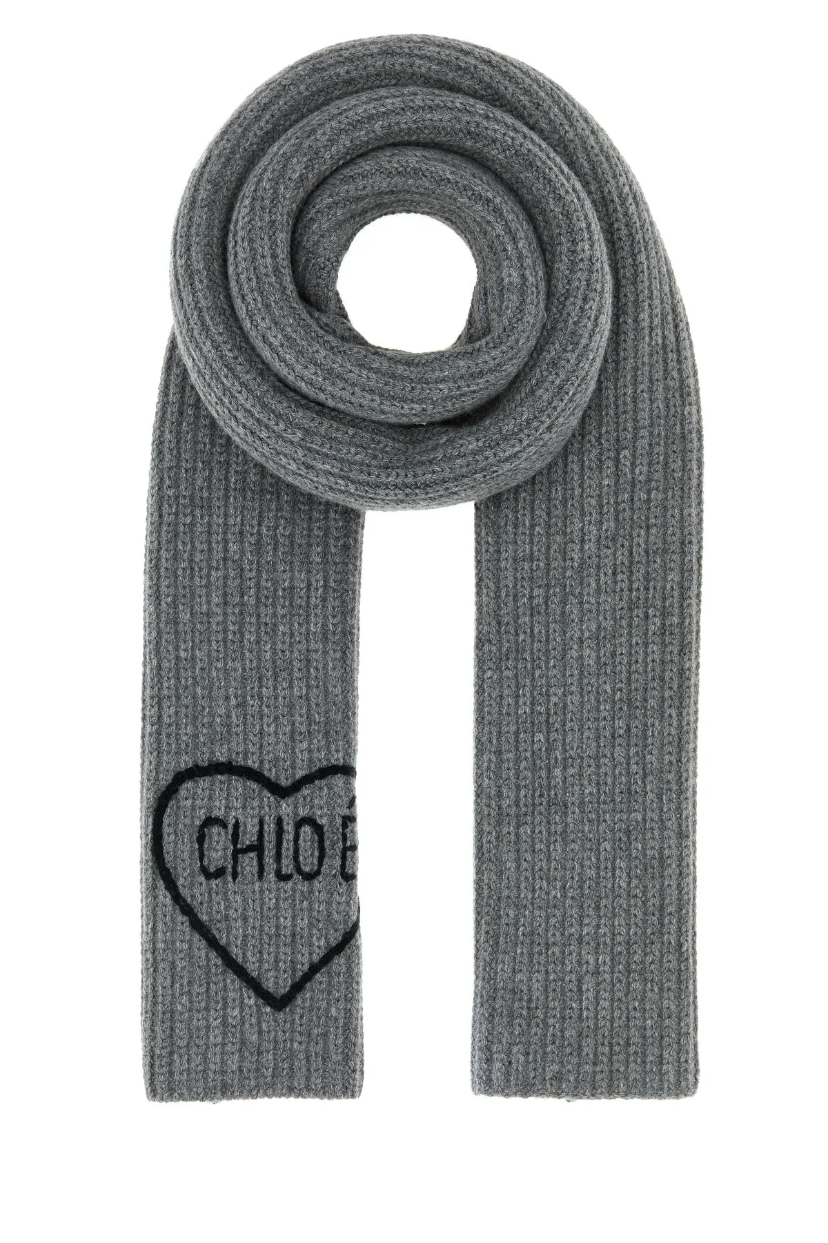 Grey wool Chloé Encoeur scarf