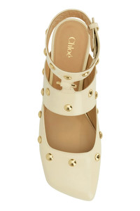 Sabot realized in polished-finish smooth calf leather enriched by peculiar metal studs on the entire surface. - Adjustable ankle strap closure - Peculiar toe - Printed logo on the inside DETAILS Ivory leather Jade sabot Exterior: 100% Calf Interior: 100% Ovine leather Sole: Leather Made in italy