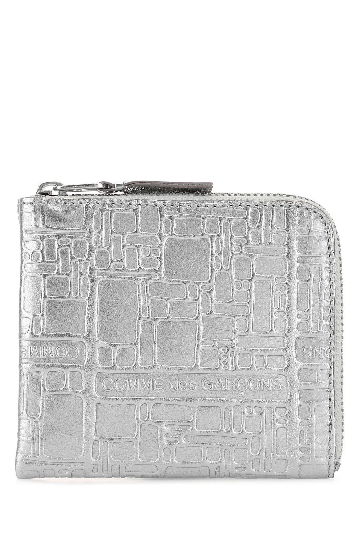 Card holder realized in laminated leather characterized by peculiar logoed motif in relief on the entire surface. - Zip closure DETAILS Silver leather card holder Exterior: 100% Leather Finishing: Silver metal Made in spain Width: 11 cm Height: 10 cm