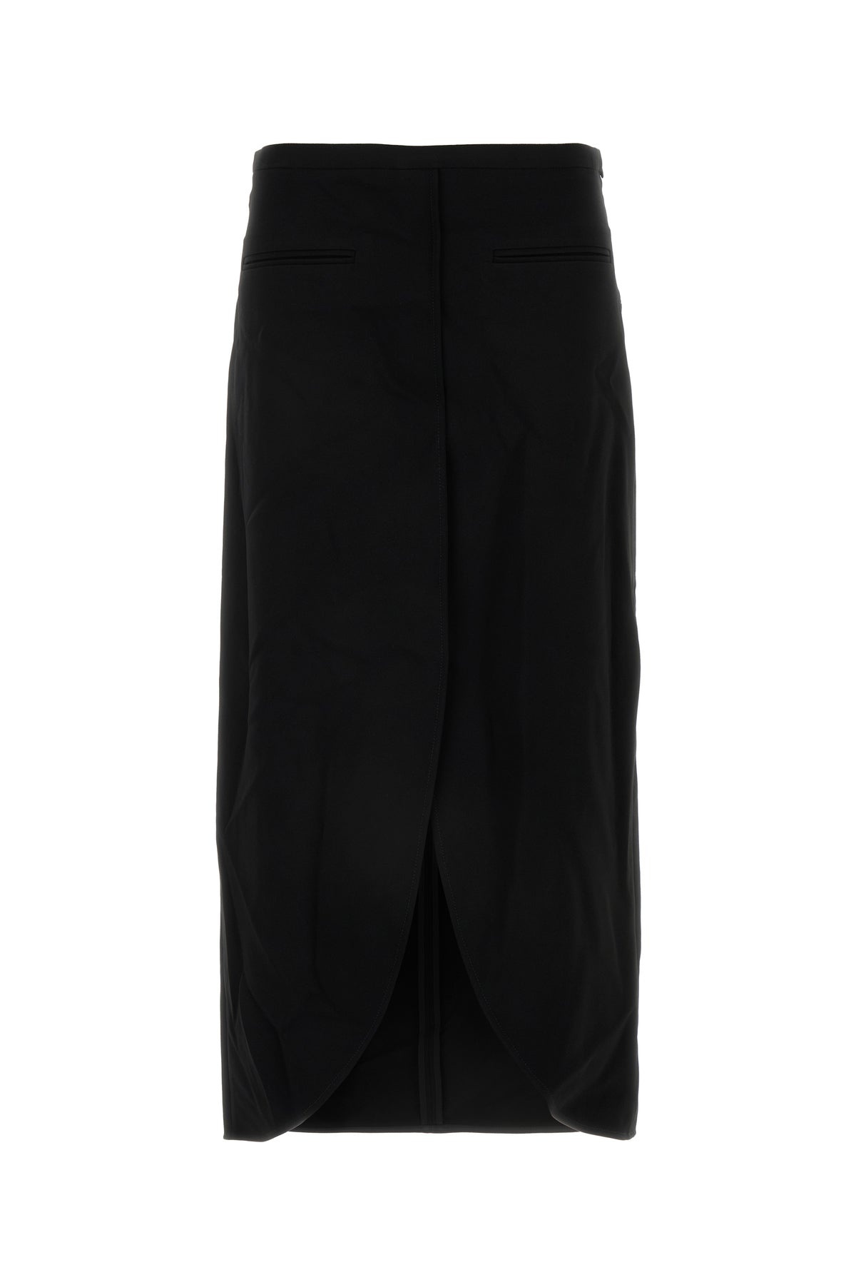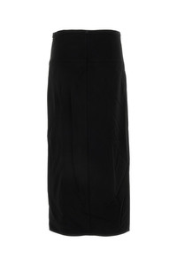 Skirt realized in polyester blend enriched by tonal logoed patch at the back. - Concealed zip closure on the side - Two flit pockets at the front - Deep central slit at the front - Unlined DETAILS Black polyester blend skirt Exterior: 89% Polyester 11% Polyurethane Made in serbia Sample size: 38