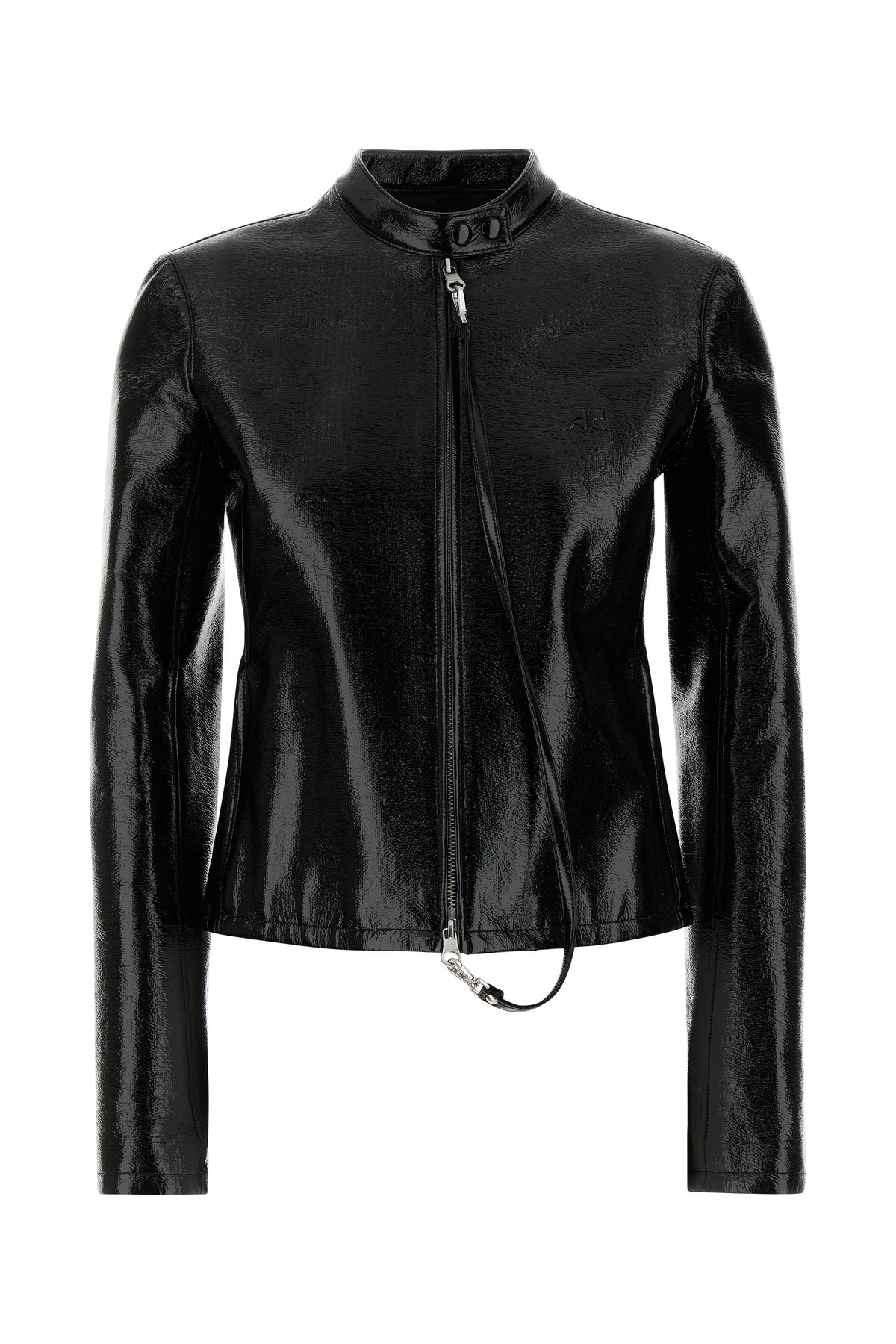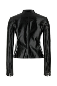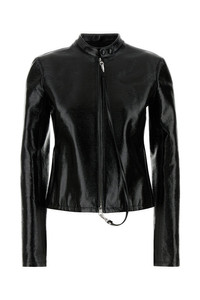 Jacket realized in stretch vynil characterized by tonal embroidered logo on the chest. - High collar - Zip closure - Two zip pockets at the front - Zipped cuffs - Lined DETAILS Black stretch vynil jacket Exterior: 88% Cotton 10% Polyurethane 2% Elastane Lining: 100% Viscose Made in slovakia Sample size: 38