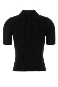 Polo shirt realized in viscose blend enriched by tonal logoed patch on the chest. - Collar - Partial buttons closure DETAILS Black viscose blend polo shirt Exterior: 70% Viscose 30% Polyester Made in Sample size: XS