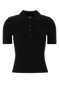 Black viscose blend polo shirt