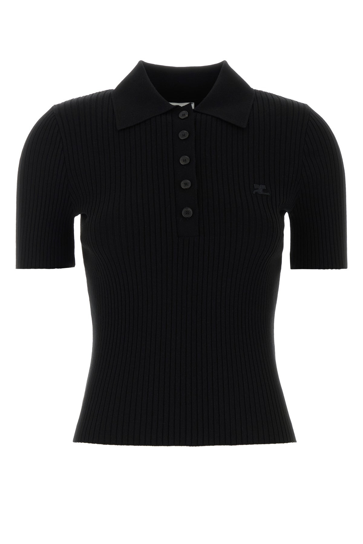 Polo shirt realized in viscose blend enriched by tonal logoed patch on the chest. - Collar - Partial buttons closure DETAILS Black viscose blend polo shirt Exterior: 70% Viscose 30% Polyester Made in Sample size: XS