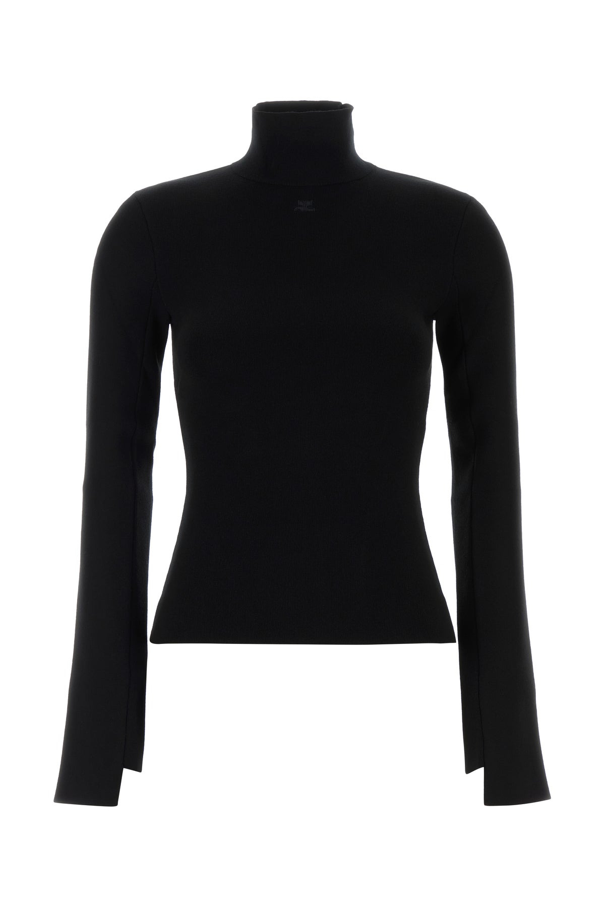 Sweater realized in viscose blend characterized by tonal embroidered logo on chest. - Mock turtleneck DETAILS Black viscose blend sweater Exterior: 70% Viscose 30% Polyester Made in Sample size: XS