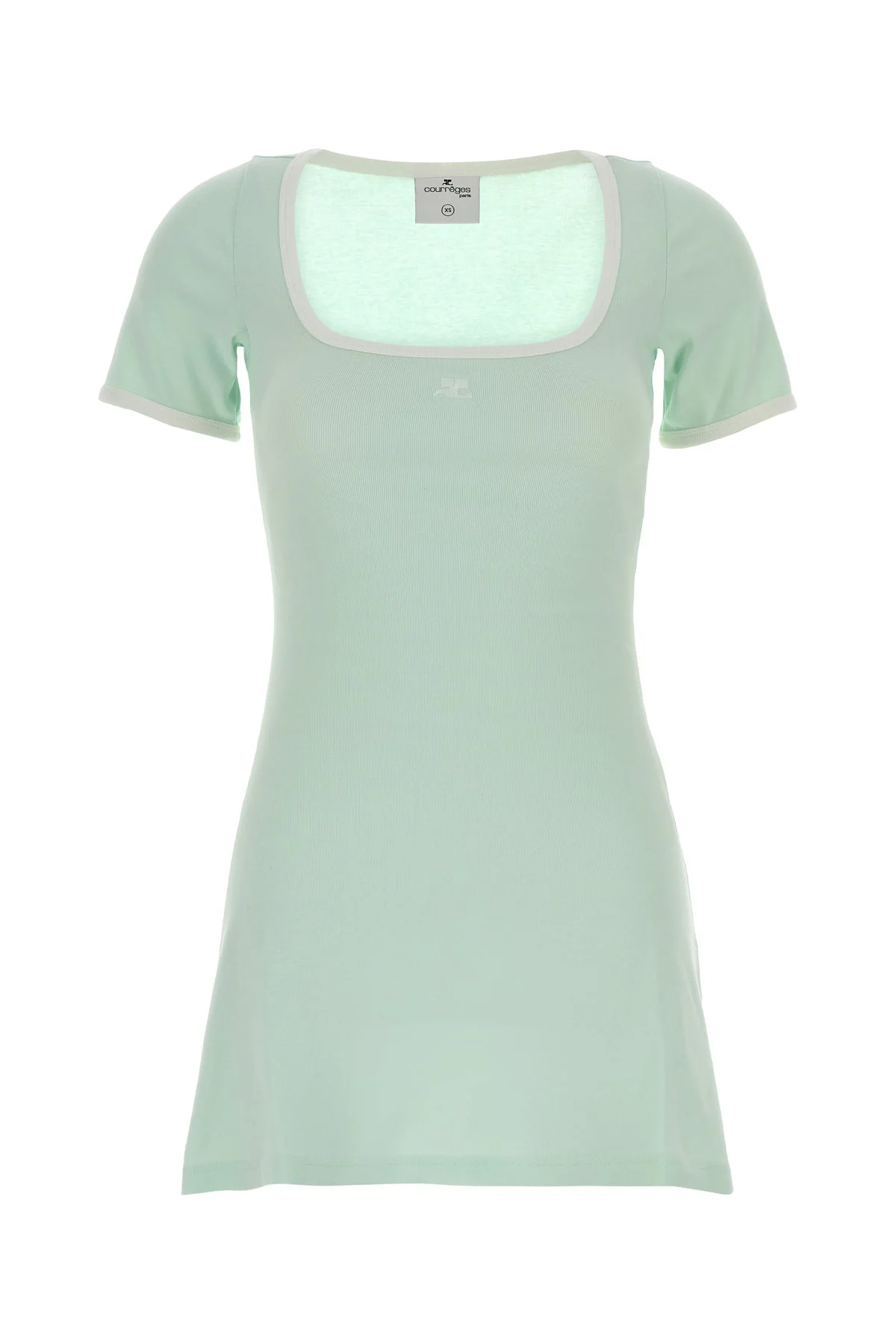 Dress realized in pure cotton enriched by logoed patch on the chest. - Contrasting round neckline - Flared hemline - Unlined DETAILS Mint green cotton dress Exterior: 100% Cotton Made in portugal Sample size: XS