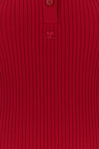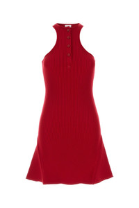 Dress realized in ribbed viscose blend enriched by tonal logoed patch on the chest. - Halter neckline - Partial buttons closure - Flared hemline - Unlined DETAILS Red viscose blend dress Exterior: 70% Viscose 30% Polyester Made in Sample size: XS