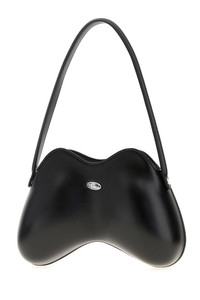 Shoulder bag realized in synthetic leather enriched by D metal detail at the front. - Tonal leather shoulder strap - Zip closure - Lined interior with a zip pocket DETAILS Black leather synthetic leather Double-D shoulder bag Exterior: 100% Fabric Lining: 100% Fabric Finishing: Silver metal Made in Width: 33 cm Height: 15 cm Depth: 10 cm Handle height: 23 cm