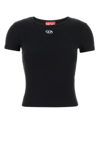 T-shirt realized in stretch cotton enriched by D metal detail on the chest. - Ribbed crew-neck DETAILS Black stretch cotton T-Elle t-shirt Exterior: 94% Cotton 6% Elastane Made in china Sample size: XS