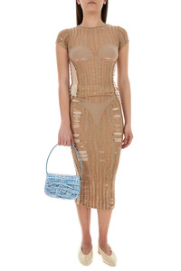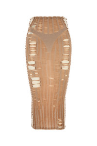 Fitted skirt realized in distressed effect cotton blend. - Elastic waist - Unlined DETAILS Camel cotton blend M-Calina skirt Exterior: 65% Cotton 35% Polypropylene Made in italy Sample size: XS