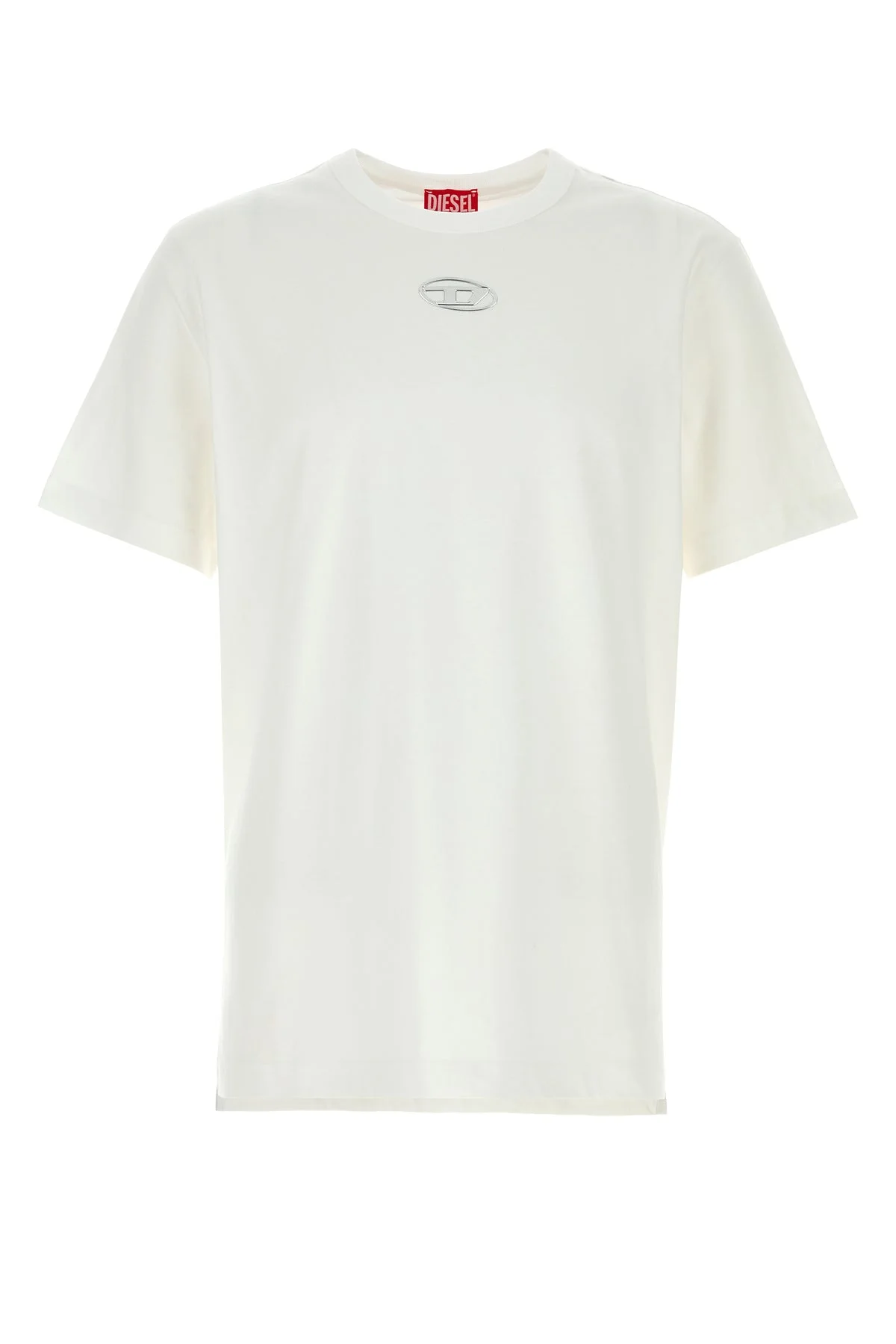 T-shirt realized in pure cotton enriched by laminated Oval D patch at the front. - Ribbed crew-neck - Lateral slits on the hemline - Loose fit DETAILS White cotton T-Adjust t-shirt Exterior: 100% Cotton Made in