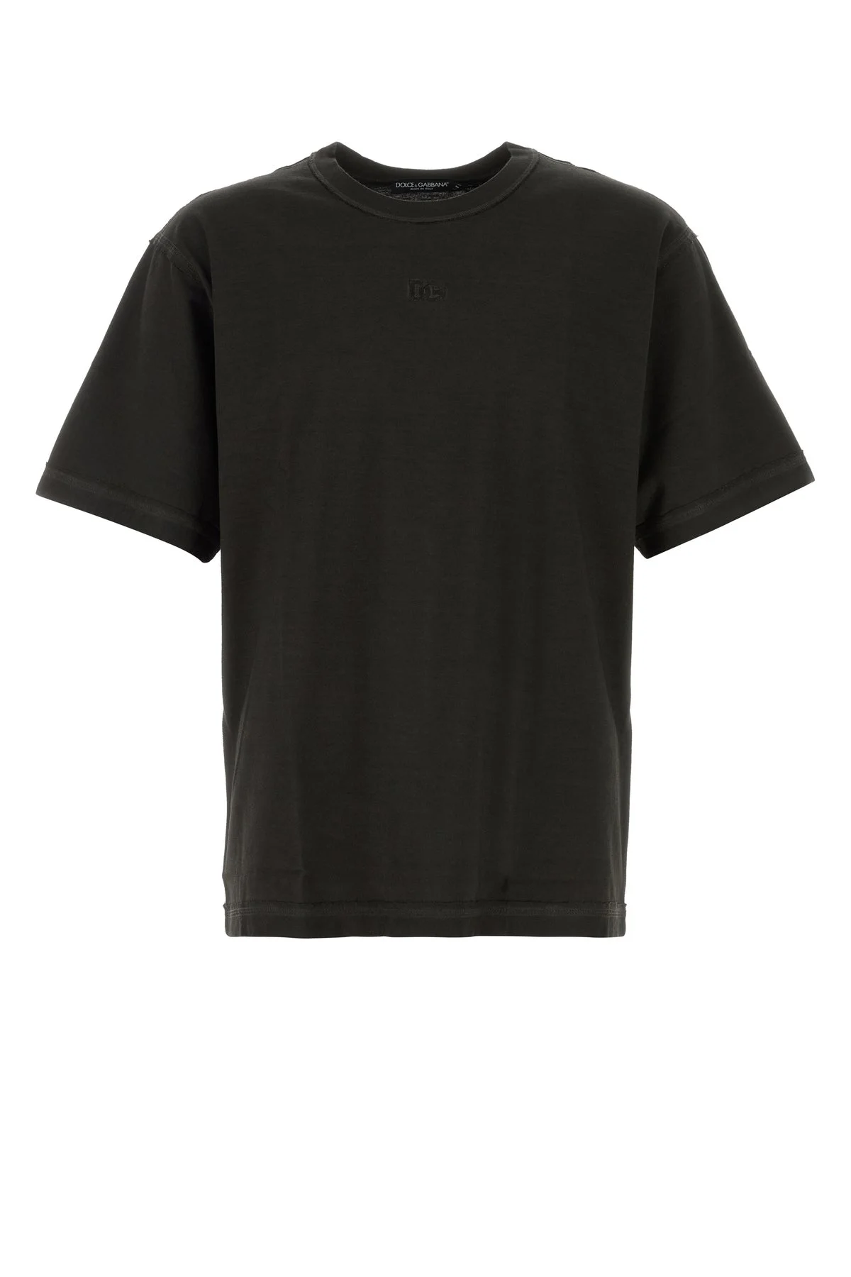 T-shirt realized in stonewashed pure cotton characterized by tonal DG embroidery at the front. - Ribbed crew-neck - Loose fit DETAILS Black cotton t-shirt Exterior: 100% Cotton Made in italy Sample size: 48