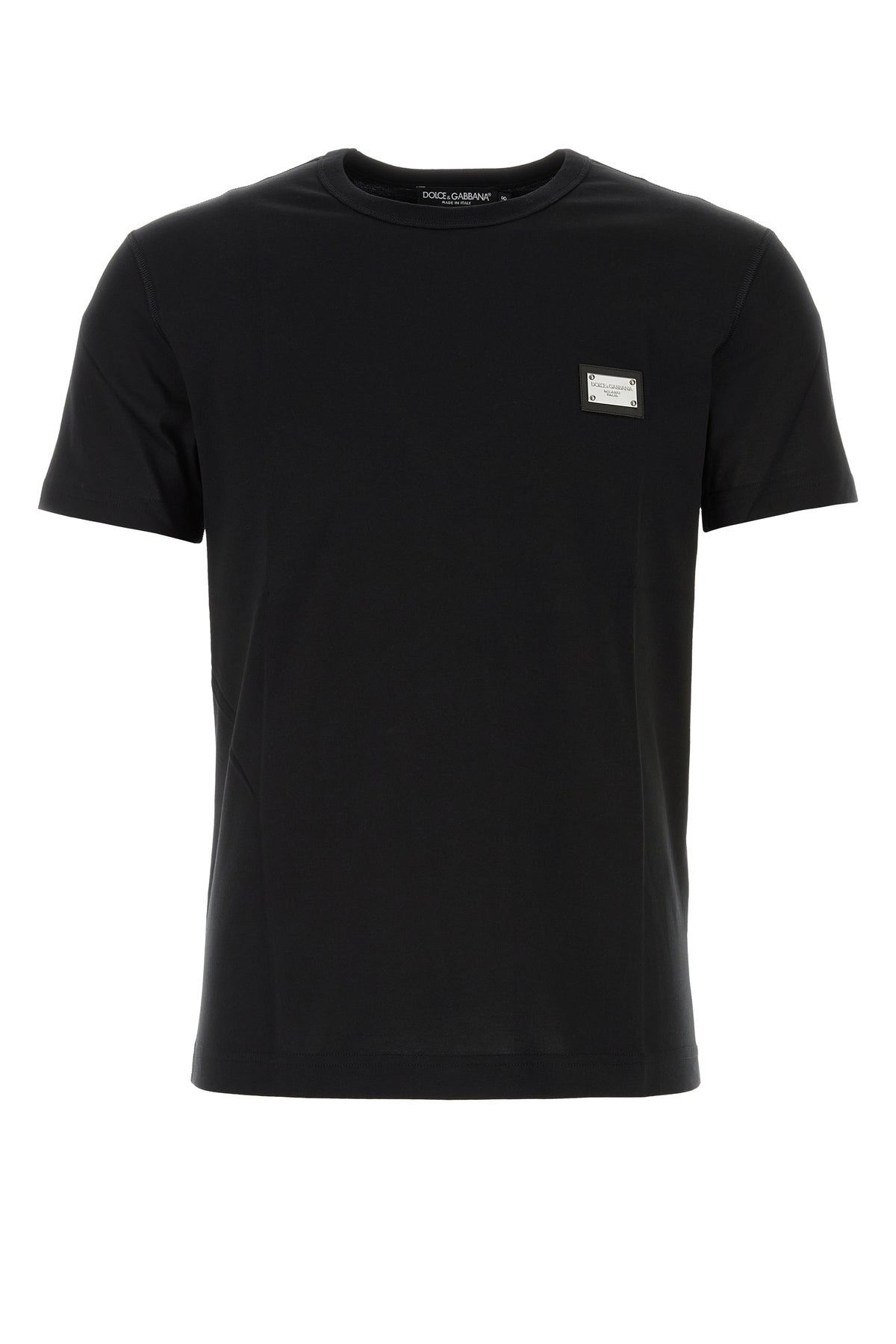 T-shirt realized in pure cotton enriched by metal logoed plate on the chest. - Ribbed crew-neck DETAILS Exterior: 100% Cotton Made In Italy Sample size: 48