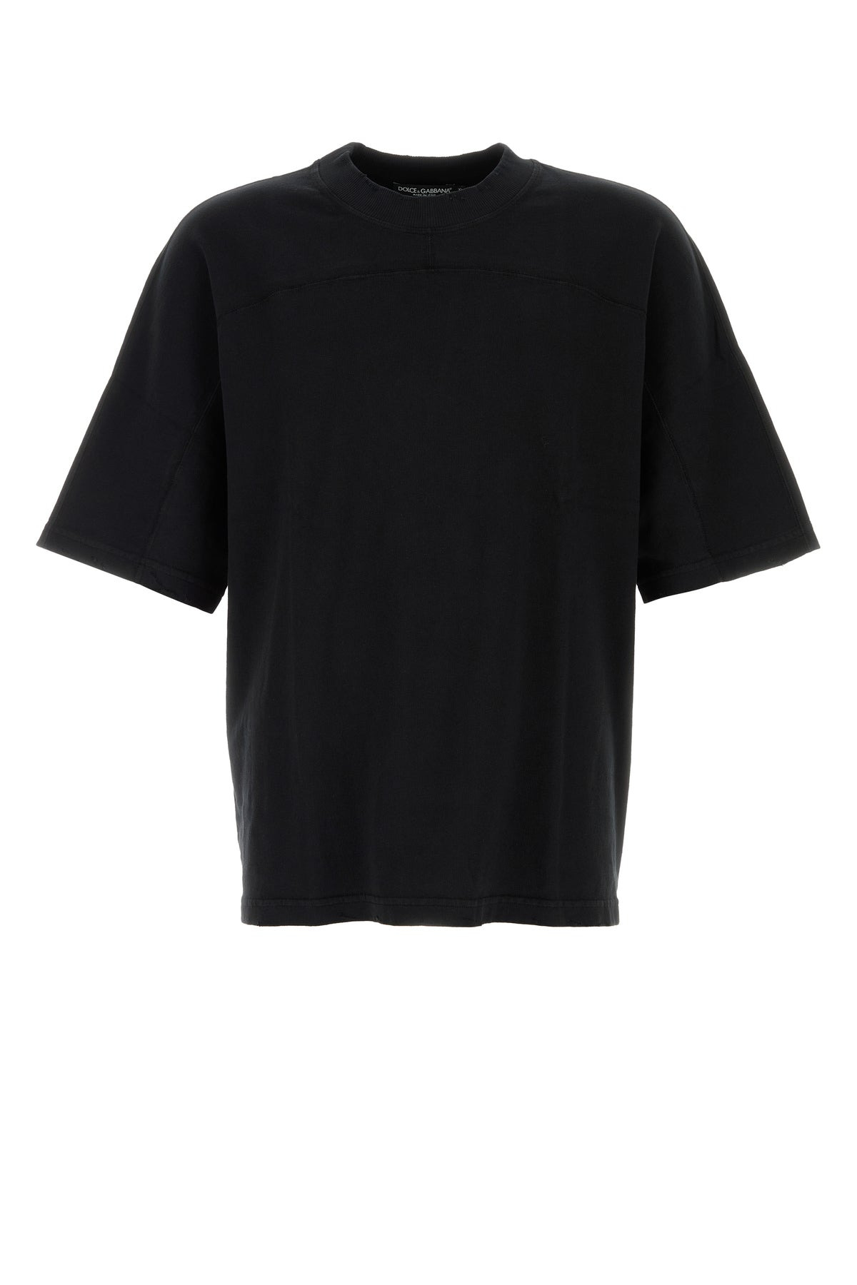 T-shirt realized in pure cotton enriched by logoed label at the back. - Ribbed crew-neck - Loose fit DETAILS Black cotton t-shirt Exterior: 100% Cotton Made in italy Sample size: 48