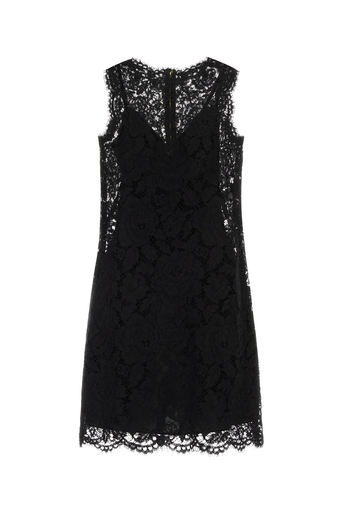 Dress realized in lace. - Crew-neck - Concealed zip and hook closure at the back - Detachable petticoat DETAILS Black lace dress Exterior: 39% Viscose 38% Cotton 25% Nylon Petticoat: 91% Silk 9% Elastane Made in italy Sample size: 40