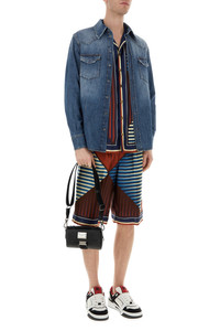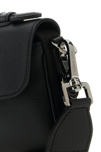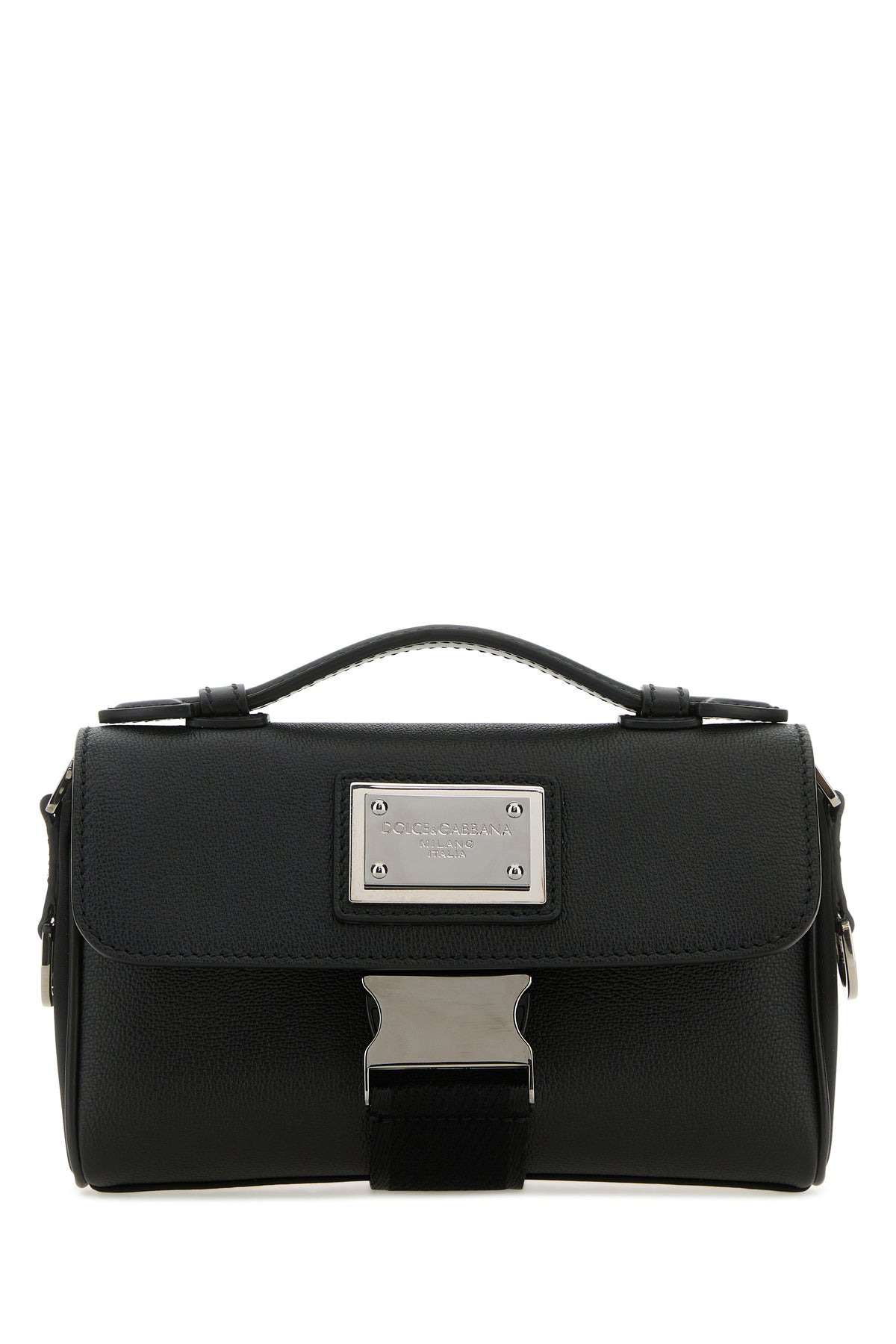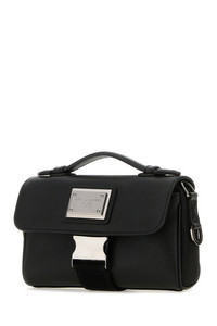 Handbag realized in pebble leather with fabric inserts enriched by logoed metal plate at the front. - A tonal leather flat handle - Adjustable detachable tonal fabric shoulder strap - Metal buckle closure at the front - Lined DETAILS Exterior: 100% Lather 100% Fabric Lining: 100% Fabric Finishing: Silver metal Made In Italy Width: 12 cm Height: 19,5 cm Depth: 4,5 cm Handle height: 3 cm Min shoulder strap length: 37 cm Max shoulder strap length: 63 cm