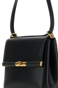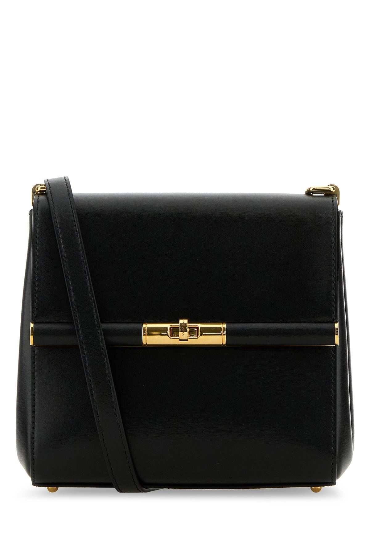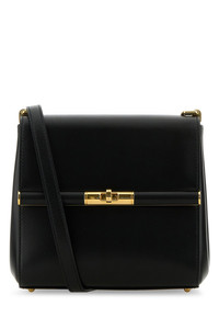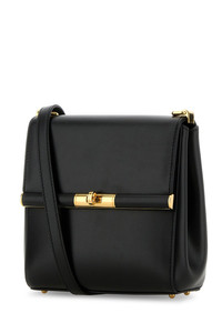 Crossbody bag realized in smooth calf leather characterized by laminated printed logo at the back. - Adjustable detachable tonal leather shoulder strap - Snap-fit closure - Lined interior with a zip pocket - Protective metal feet at the base DETAILS Black leather Marlene crossbody bag Exterior: 100% Calf Lining: 100% Lamb Finishing: Golden metal Made in italy Width: 18 cm Height: 16 cm Depth: 8 cm Min shoulder strap length: 52 cm Max shoulder strap length: 60 cm