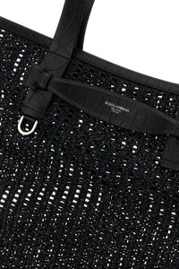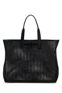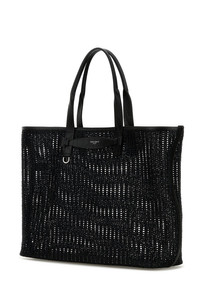 Shopping bag realized in mesh characterized by laminated printed logo at the front. - Two tonal leather flat handles - Unlined DETAILS Black mesh shopping bag Exterior: 100% Fabric Finishing: Silver metal Made in italy Width: 50 cm Height: 44 cm Depth: 14 cm Handle height: 26 cm