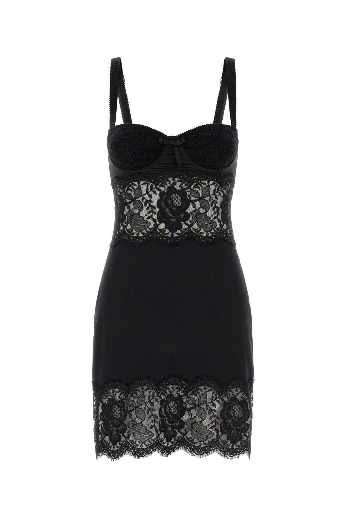 Dress realized in lace and satin enriched by decorative bow on the sweetheart neckline. - Thin shoulder straps - Concealed zip closure at the back - Unlined DETAILS Black satin and lace dress Exterior: 70% Silk 18% Cotton 10% Nylon 5% Elastane Made in italy Sample size: 38
