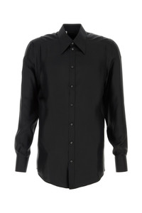 Shirt realized in pure silk satin characterized by italian collar. - Buttons closure - Angle-cut cuffs with button - Rear yoke and placket DETAILS Black satin shirt Exterior: 100% Silk Made in italy Sample size: 40