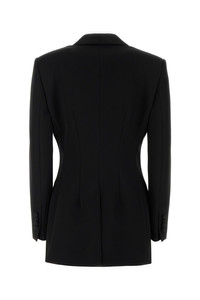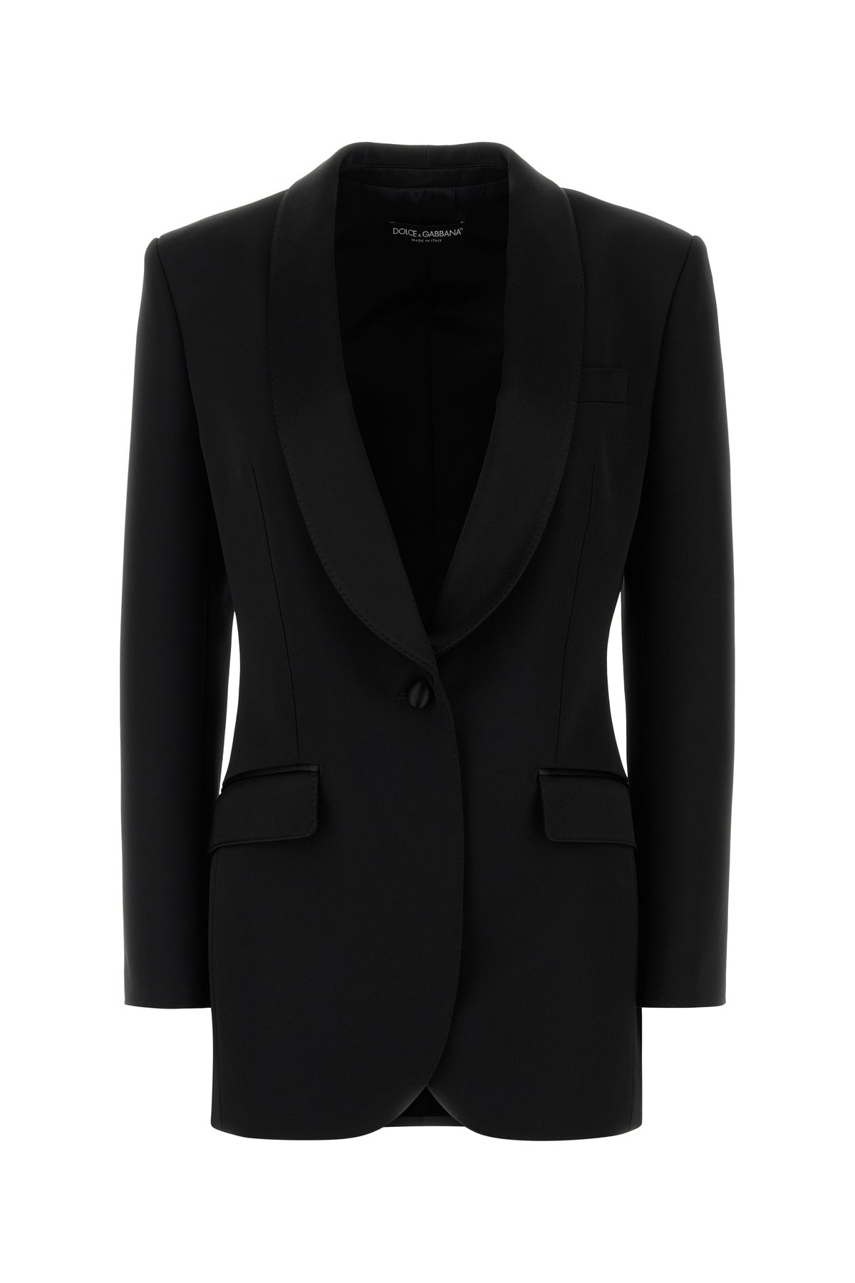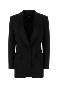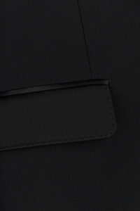 Blazer realized in stretch virgin wool blend characterized by padded shoulders. - Shawl lapels - Single-breasted closure by button - A chest pocket and two flap pockets at the front - Four buttons on the sleeves - Central slit at the back - Lined DETAILS Black stretch wool blend blazer Exterior: 80% Virgin wool 16% Silk 4% Elastane Lining: 92% Silk 8% Elastane Made in italy Sample size: 40