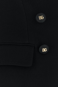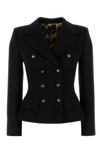 Blazer realized in pure virgin wool characterized by padded shoulders. - Peak lapels - Double-breasted closure by buttons - Two flap pockets at the front - Four buttons on the sleeves - Lined DETAILS Black wool blazer Exterior: 100% Virgin wool Lining: 97% Polyester 3% Elastane Made in italy Sample size: 38