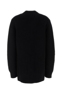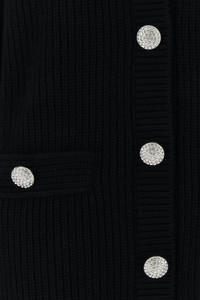 Oversize cardigan realized in pure virgin wool characterized by jewel buttons closure. - Ribbed crew-neck, cuffs and hemline - Two slit pockets at the front DETAILS Black wool oversize cardigan Exterior: 100% Virgin wool Made in italy Sample size: S