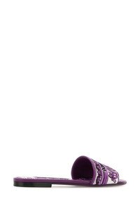 Slippers realized in fabric characterized by floral embroidery and embroidered logo on the instep. - Round toe - Logoed label on the inside DETAILS Embroidered fabric slippers Exterior: 100% Fabric Interior: 100% Leather 100% Fabric Sole: Leather Made in italy