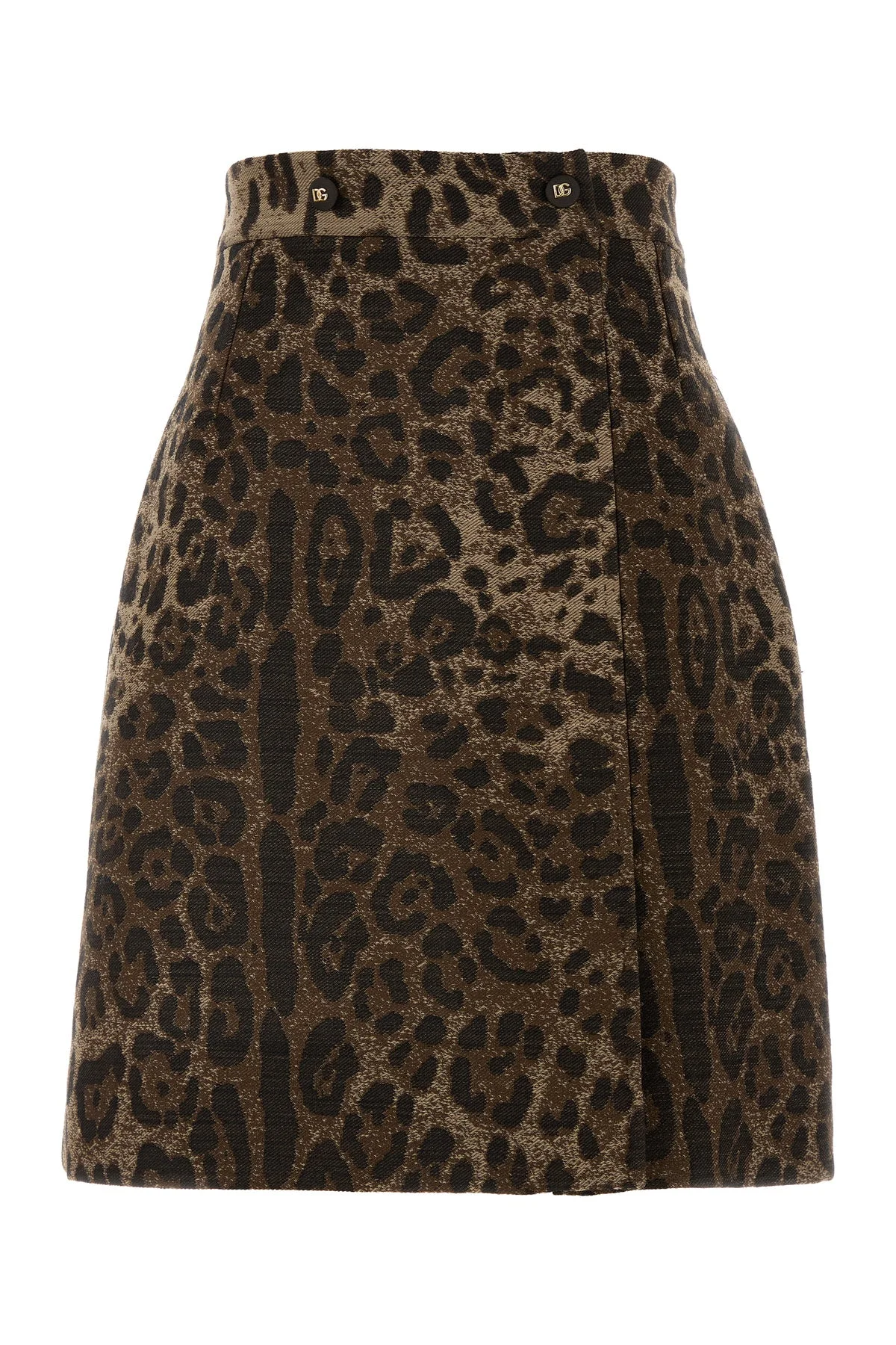 Short wool skirt with jacquard leopard design
