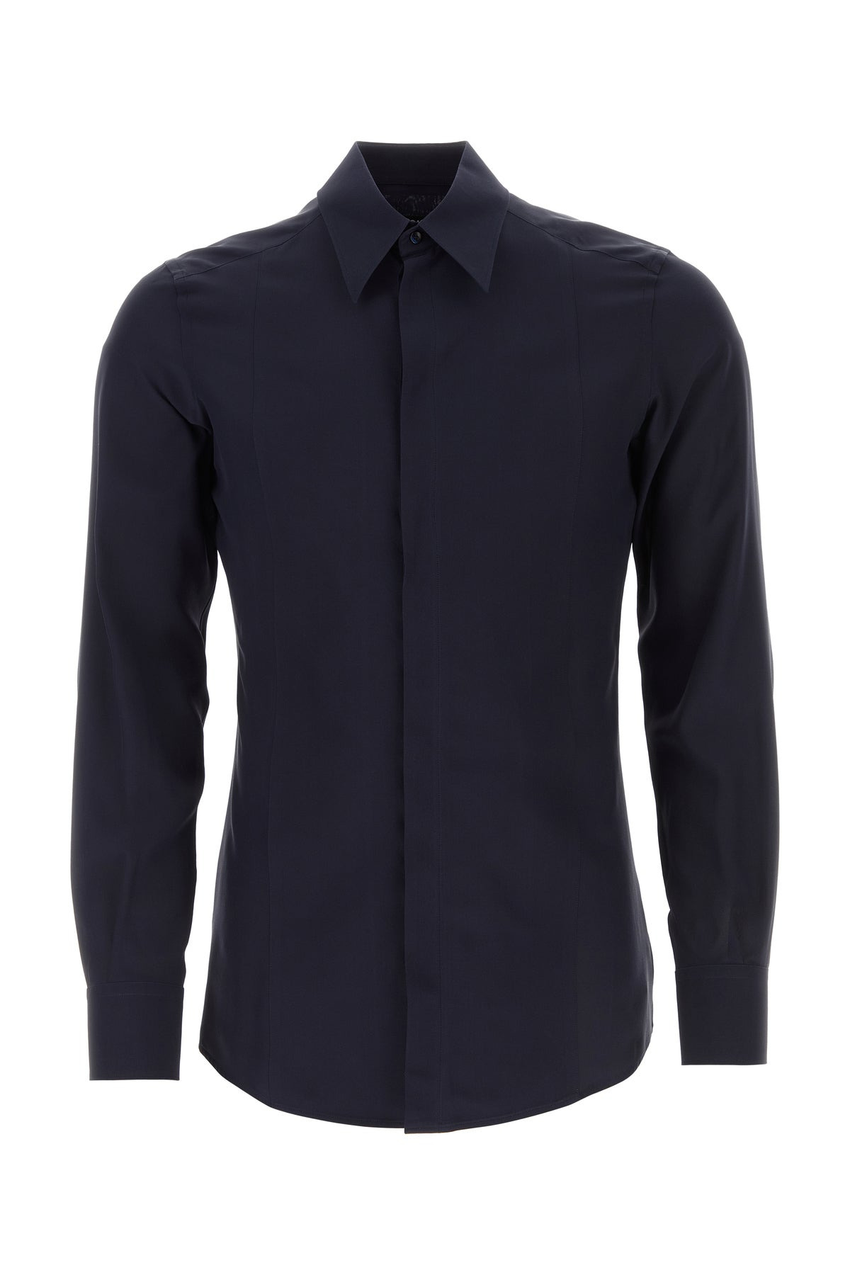 Shirt realized in pure silk crepe characterized by italian collar. - Concealed buttons closure - Buttoned angle-cut cuffs - Rear yoke and placket DETAILS Exterior: 100% Silk Made In Italy Sample size: 39