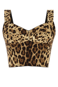 Bodice realized in stretch silk blend characterized by animal print on the entire surface. - V neckline - Zip closure at the back - Lined DETAILS Printed stretch silk blend bodice Exterior: 66% Silk 24% Polyester 10% Elastane Lining: 97% Polyester 3% Elastane Made in italy Sample size: 36