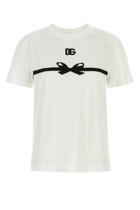 T-shirt realized in pure cotton characterized by DG embroidery on the chest enriched by Bow patch at the front and at the back. - Ribbed crew-neck DETAILS White cotton t-shirt Exterior: 100% Cotton Made in italy Sample size: 38