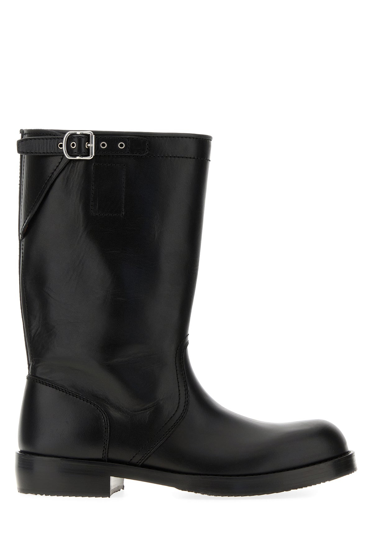 Boots realized in smooth leather characterized by straps at the top. - Round toe - Printed logo on the inside DETAILS Black leather boots Exterior: 100% Leather Interior: 100% Leather Sole: Rubber Made in italy