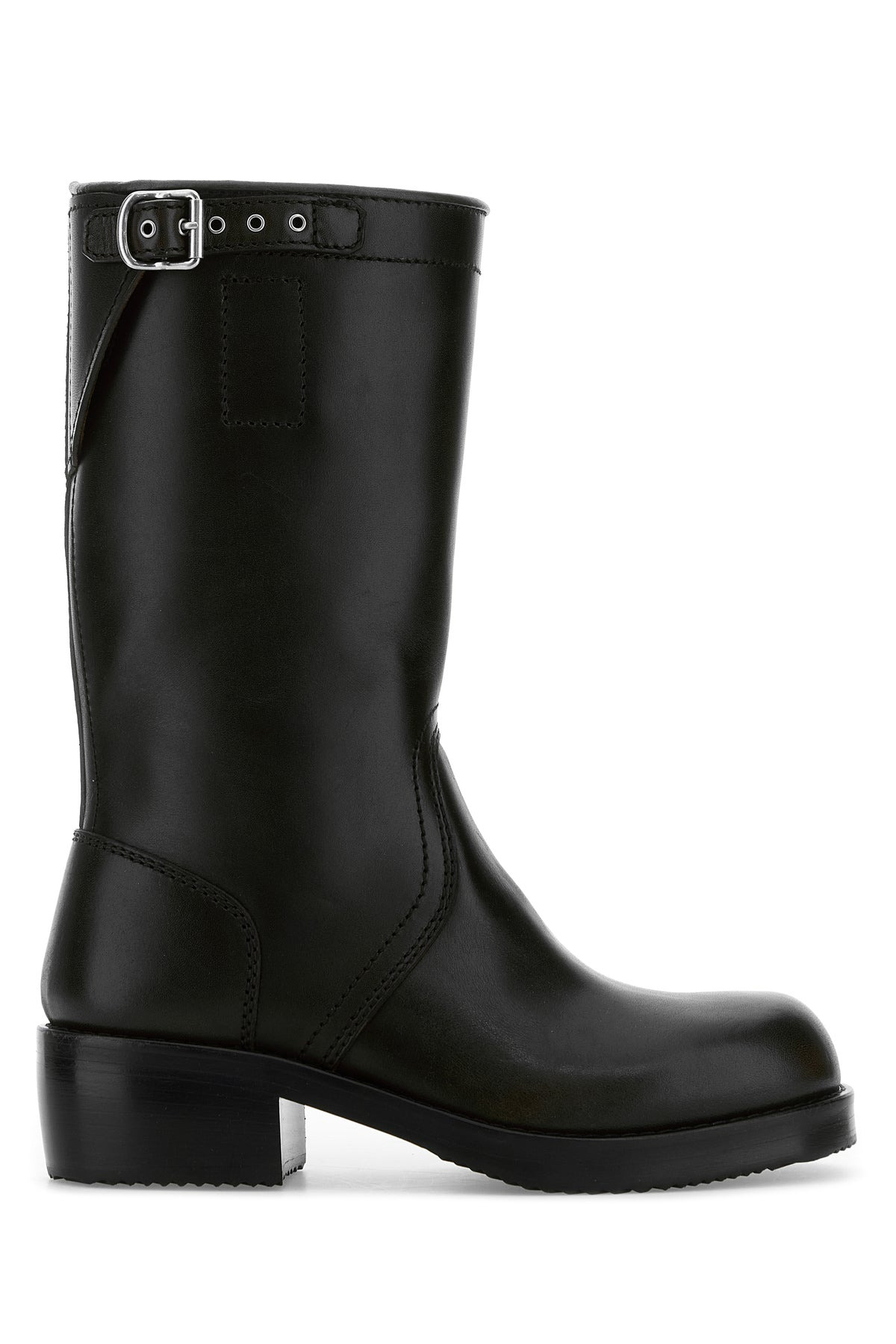 Boots realized in smooth leather enriched by adjustable strap at the top. - Round toe - Printed logo on the inside DETAILS Black leather boots Exterior: 100% Leather Interior: 100% Leather Sole: Rubber Made in italy
