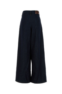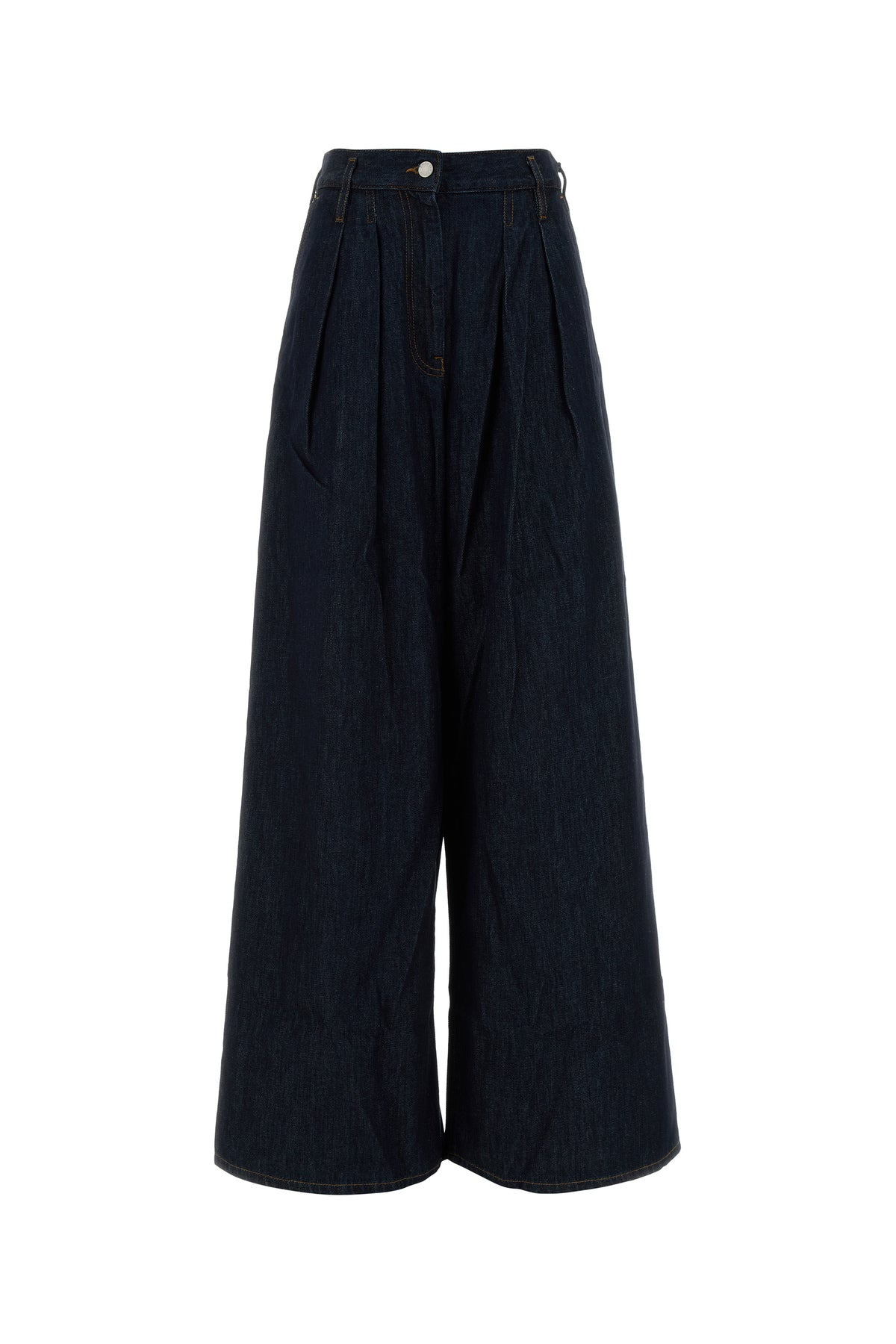 Wide-leg jeans realized in pure cotton denim enriched by logoed label at the back. - Belt loops at the waist - Concealed zip and single visible button closure - Slant pockets and two patch pockets at the back - Inverted pleats DETAILS Denim wide-leg jeans Exterior: 100% Cotton Made in tunisia Sample size: XS