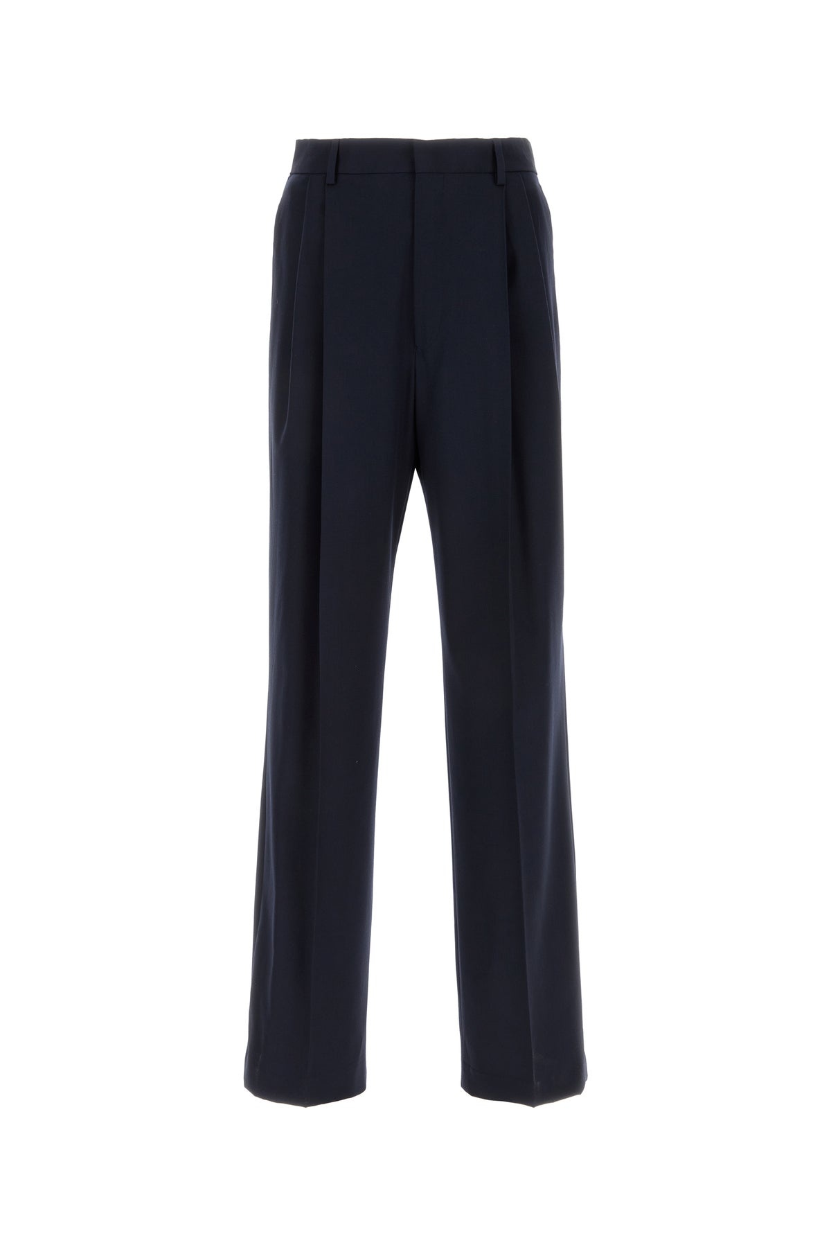 Pant realized in pure wool characterized by inverted pleats. - Belt loops at the waist - Concealed zip and hook closure - Slant pockets and two slit pockets at the back DETAILS Navy blue wool Panrom pant Exterior: 100% Wool Made in morocco Model is 190 cm and is wearing a size 48