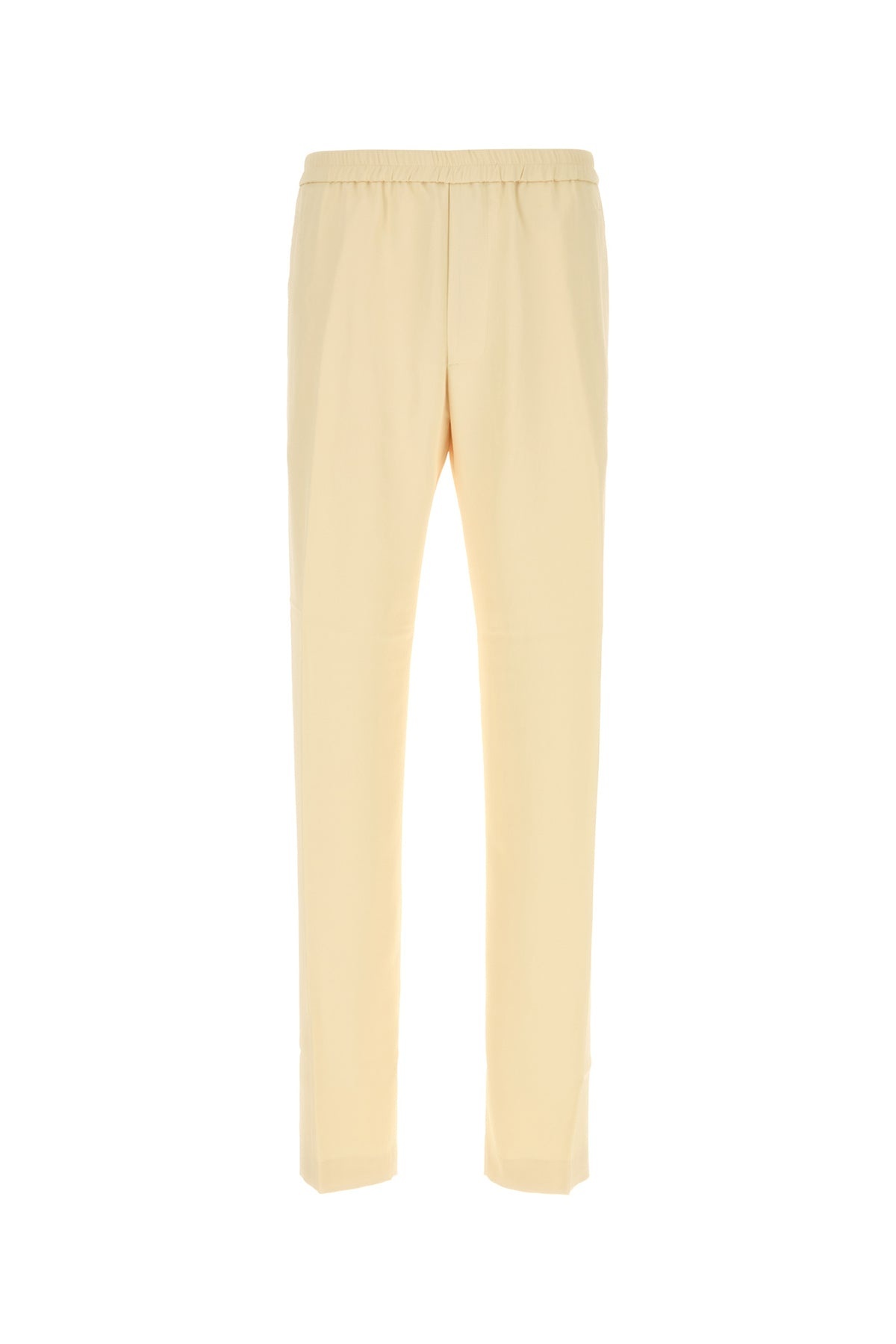 Pant realized in jersey. - Gathered elastic waist with inner drawstring - Two slit pockets at the front and a slit pocket at the back DETAILS Pastel yellow jersey Pennams pant Exterior: 100% Acetate Made in tunisia Sample size: 48