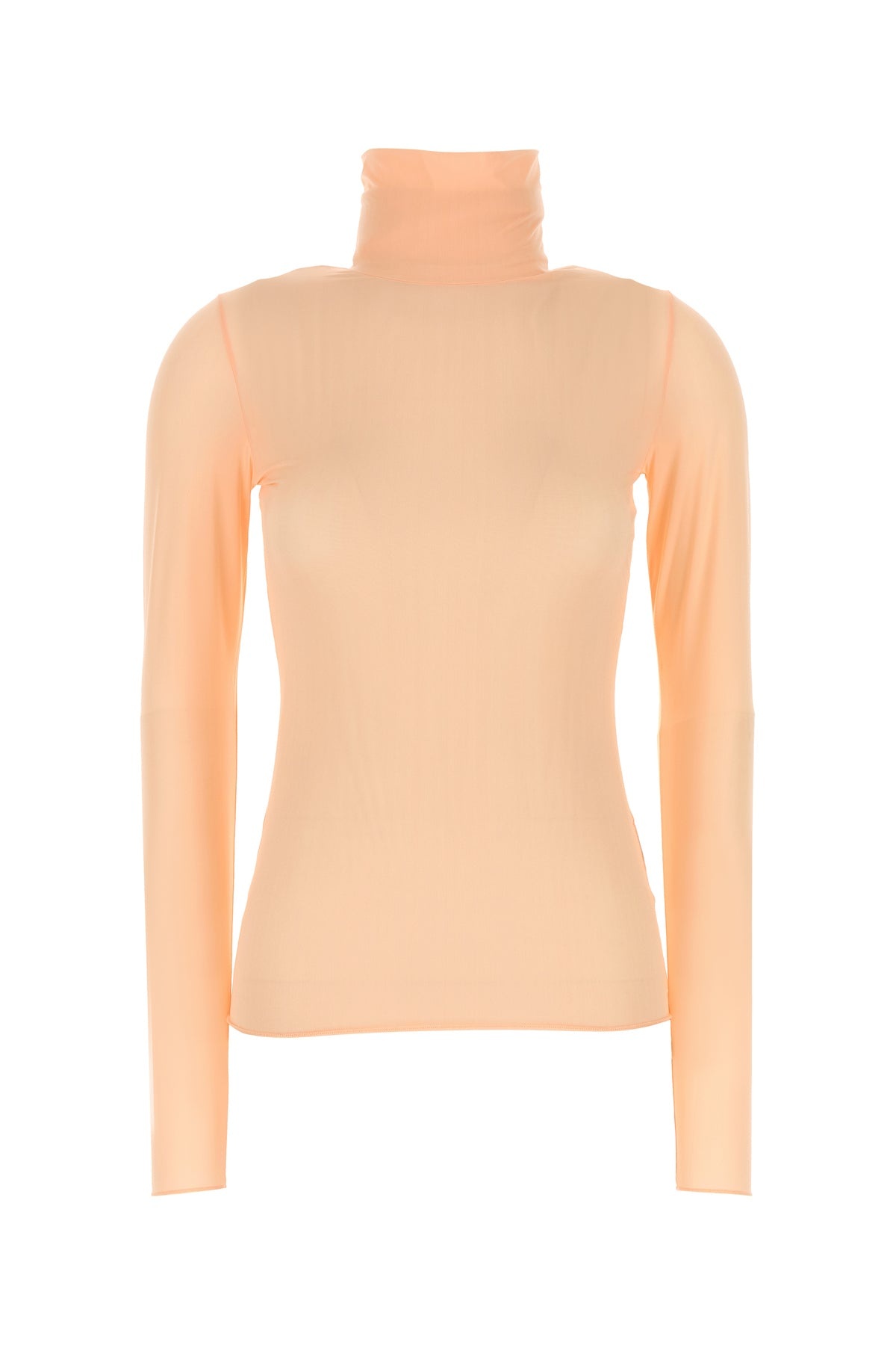 Long-sleeves top realized in stretch nylon. - High-neck DETAILS Salmon stretch nylon top Exterior: 75% Nylon 25% Elastane Made in turkiye Sample size: XS