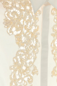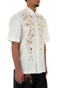 Short-sleeve shirt realized in pure cotton poplin enriched by cut-out details with sequins at the front. - Italian collar - Concealed buttons closure - Lateral slits on the hemline - Rear yoke DETAILS White poplin Cassidye shirt Exterior: 100% Cotton Made in india Model is 190 cm and is wearing a size M