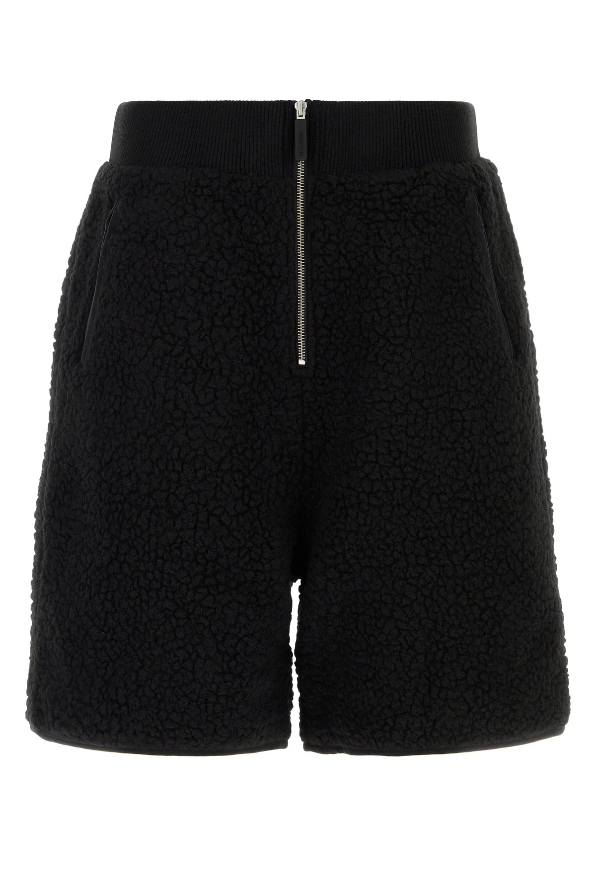 Bermuda shorts realized in teddy. - Elastic waist - Zip closure - Two zip pockets at the front - Lined DETAILS Black teddy bermuda shorts Exterior: 70% Recycled polyester 30% Wool Lining: 97% Cotton 3% Spandex Made in china Sample size: M