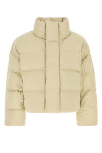 Down jacket realized in quilted pure cotton characterized by high collar. - Concealed zip closure - Two slit pockets at the front - Ribbed cuffs - Lined DETAILS Sand cotton down jacket Exterior: 100% Cotton Lining: 100% Cotton Padding: 90% Down 10% Feather Made in china Sample size: M