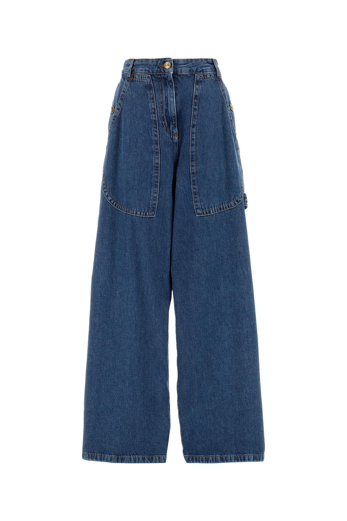 Jeans realized in pure cotton denim characterized by tonal Pegaso embroidery at the back. - Belt loops at the waist - Concealed zip closure with a single visible button - Patch pockets and two patch pockets at the back - Flared hemline DETAILS Exterior: 100% Cotton Made In Italy Model is 177 cm and is wearing a size 26