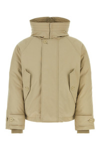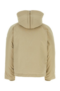 Padded jacket realized in polyester blend enriched by logoed label on the sleeve. - Hood - Concealed buttons closure at the front - Two flap pockets at the front - Lined interior with two slit pockets DETAILS Exterior: 84% Polyester 16% Cotton Lining: 100% Nylon Padding: 100% Nylon Made In Italy Sample size: 48