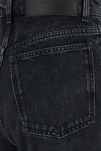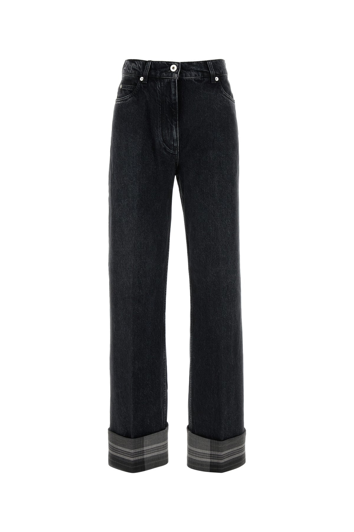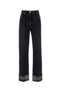 Jeans realized in stonewashed pure cotton denim enriched by tonal logged label at the back. - Belt loops at the waist - Concealed zip and single visible button closure - Five classic pockets - Central ironed pleats - Embroidered folded hemline DETAILS Black denim jeans Exterior: 100% Cotton Made in italy Sample size: 38