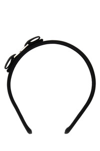 Hairband realized in ribbed cotton blend enriched by tonal fabric Vara bow with metal detail. DETAILS Exterior: 36% Cotton 35% Rayon 15% PVC Finishing: Golden metal Made In Italy