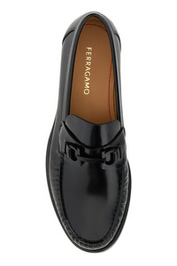 Loafers realized in polished-finish smooth calf leather enriched by metal Gancini detail on the vamp. - Round toe - Embossed logo on the inside DETAILS Black leather Fort loafers Exterior: 100% Calf Interior: 100% Leather Sole: Leather and rubber Made in italy